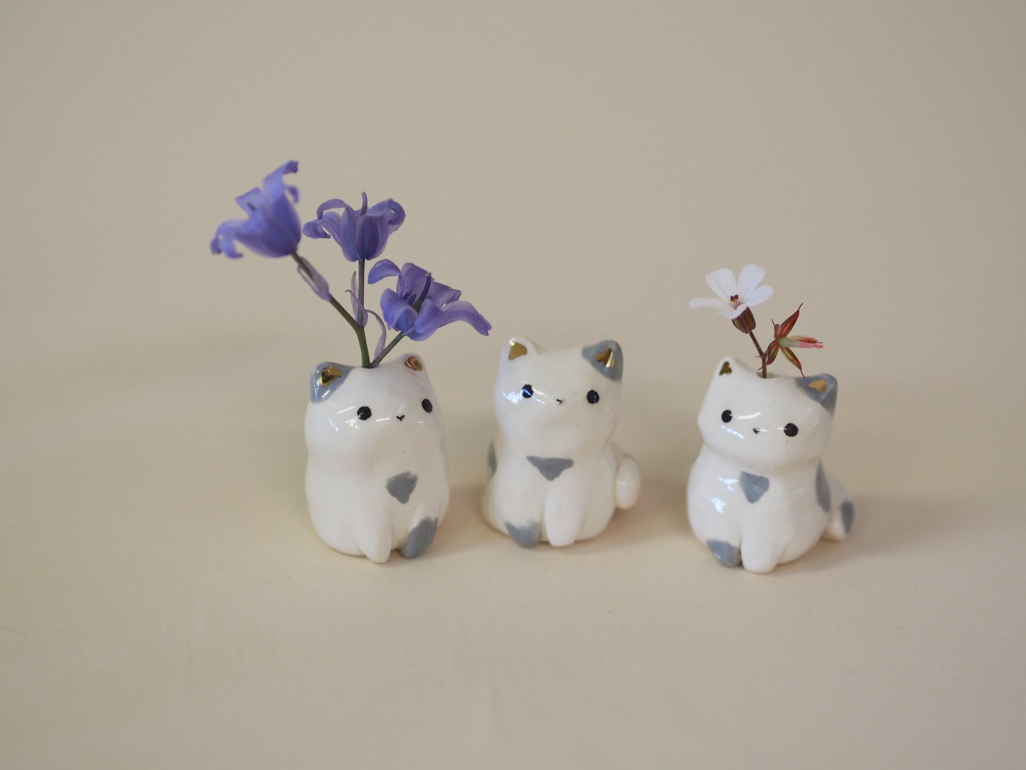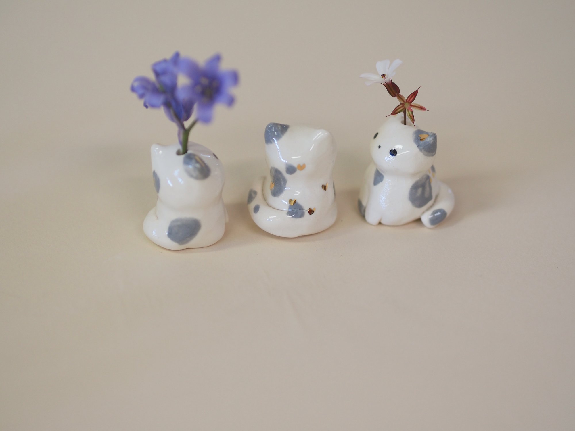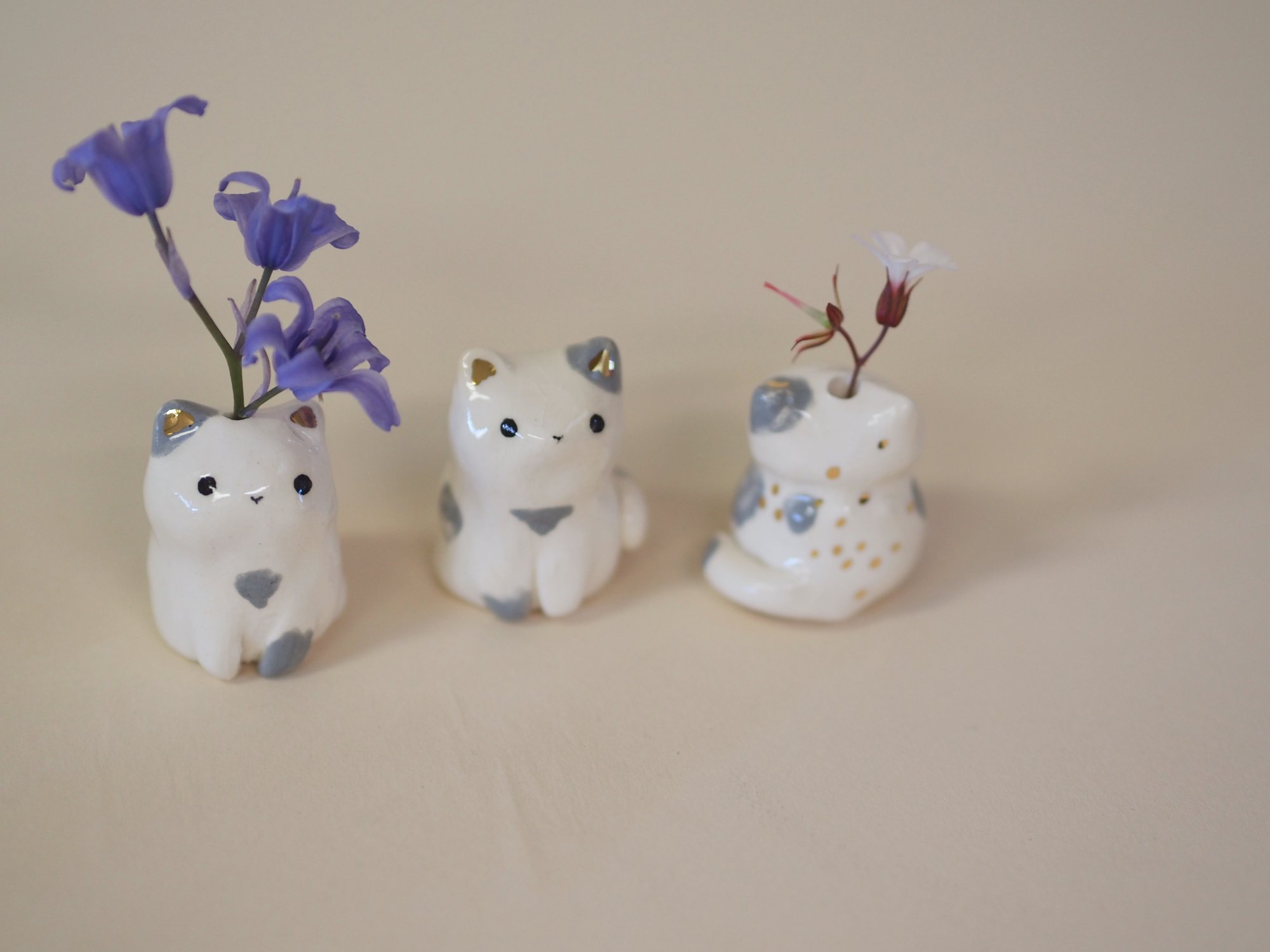 The middle kitten has no hole and isn't a sprig holder but the other two are.