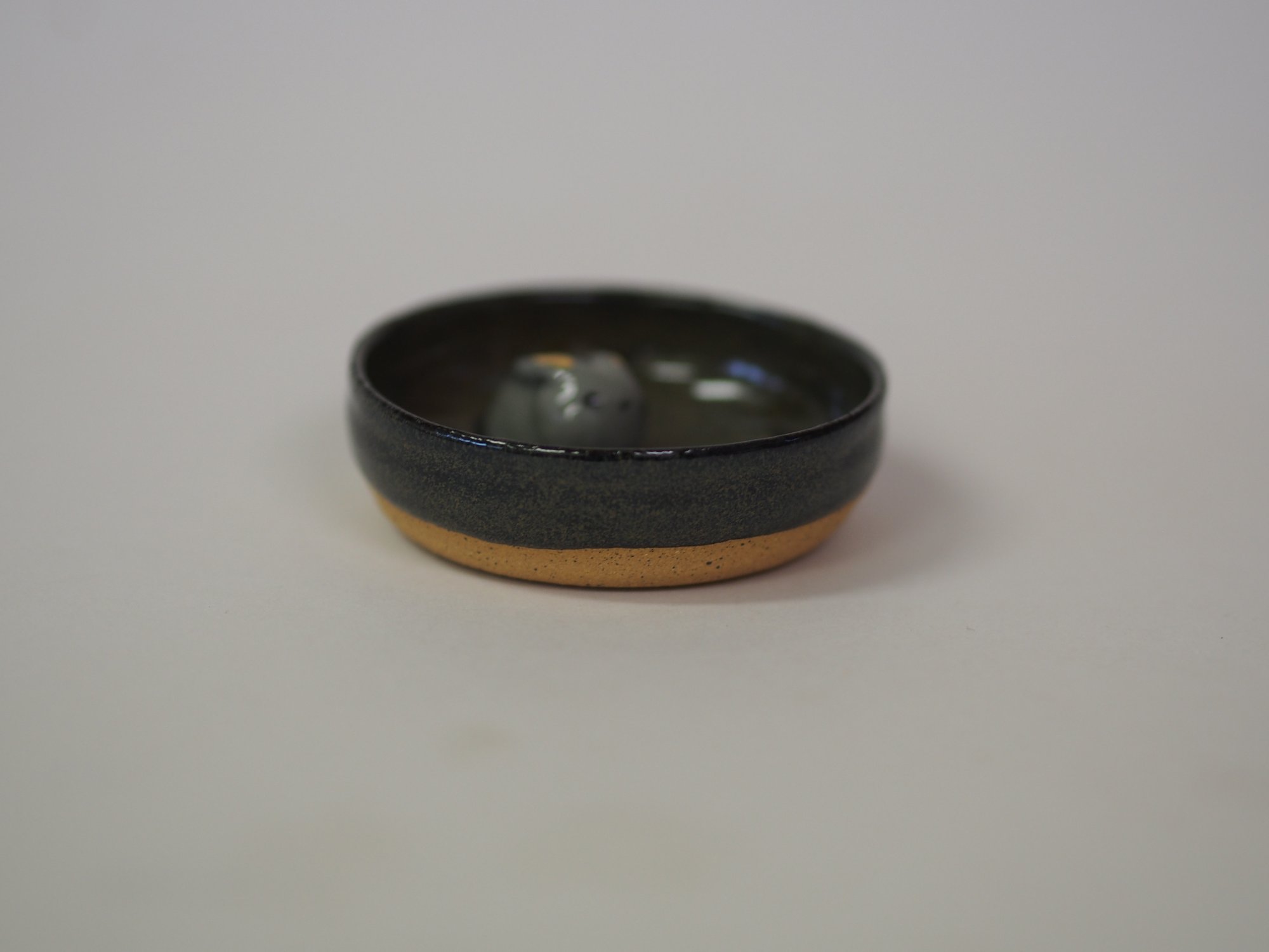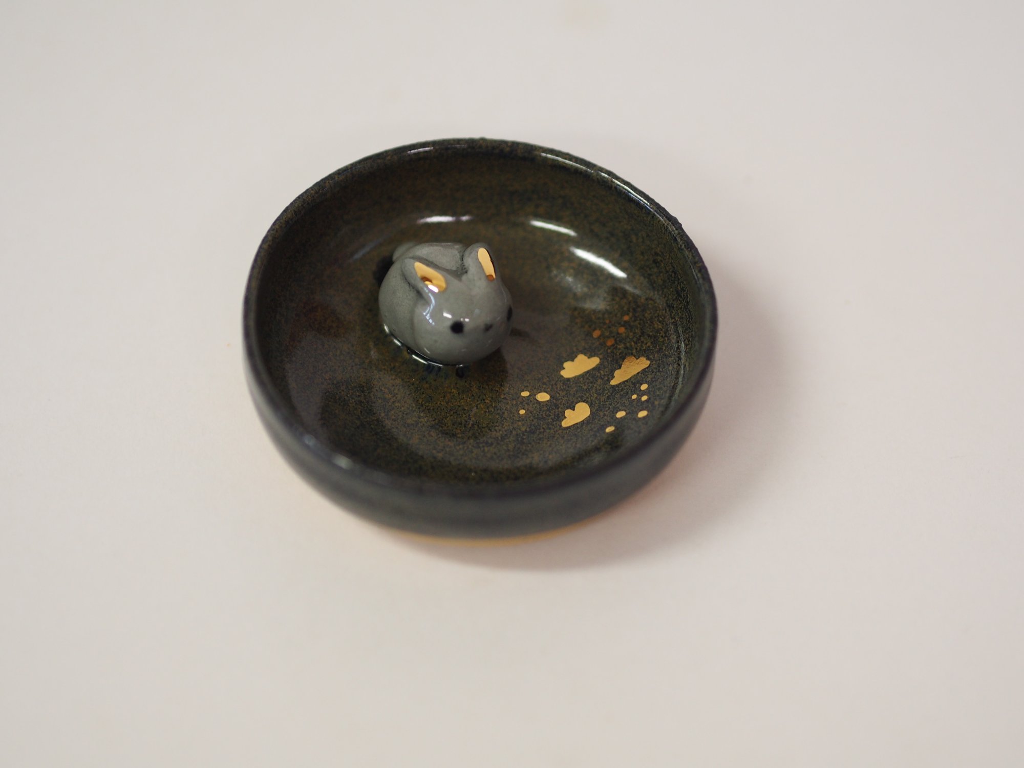 Small treasure dish with a little bunny and gold luster clouds and stars.