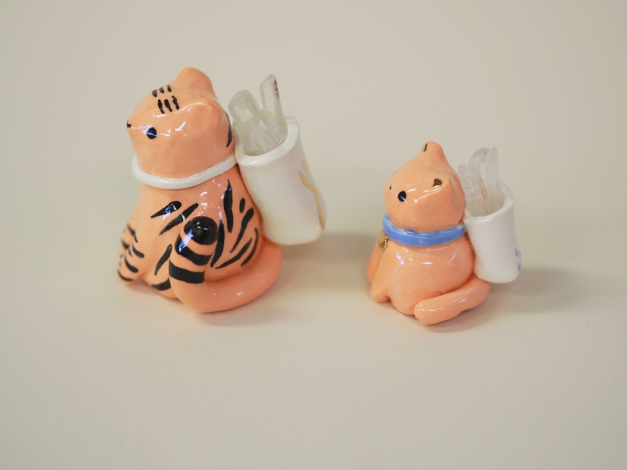 This listings for the large orange tiger who has a backpack filled with quartz crystals (included).
