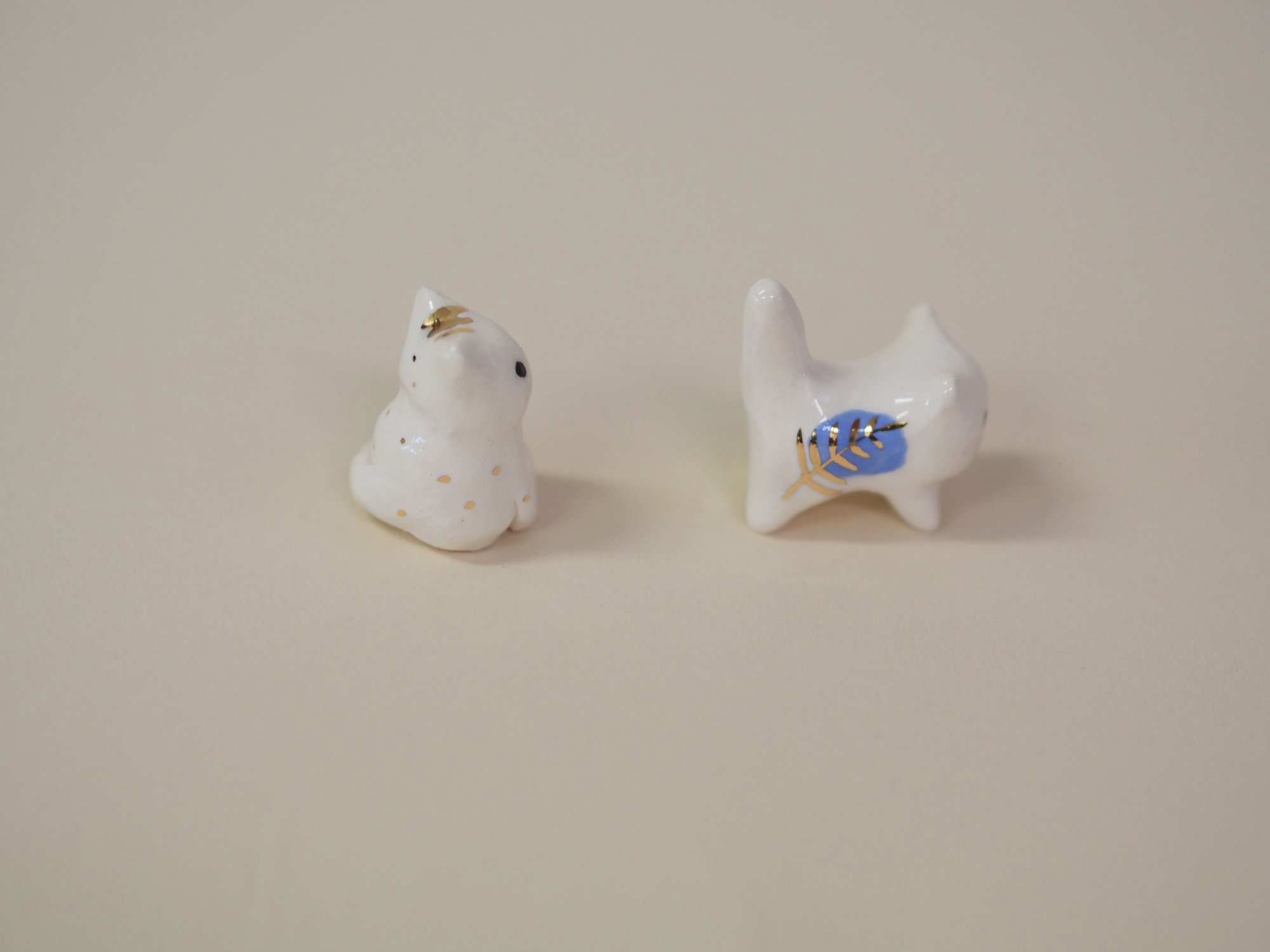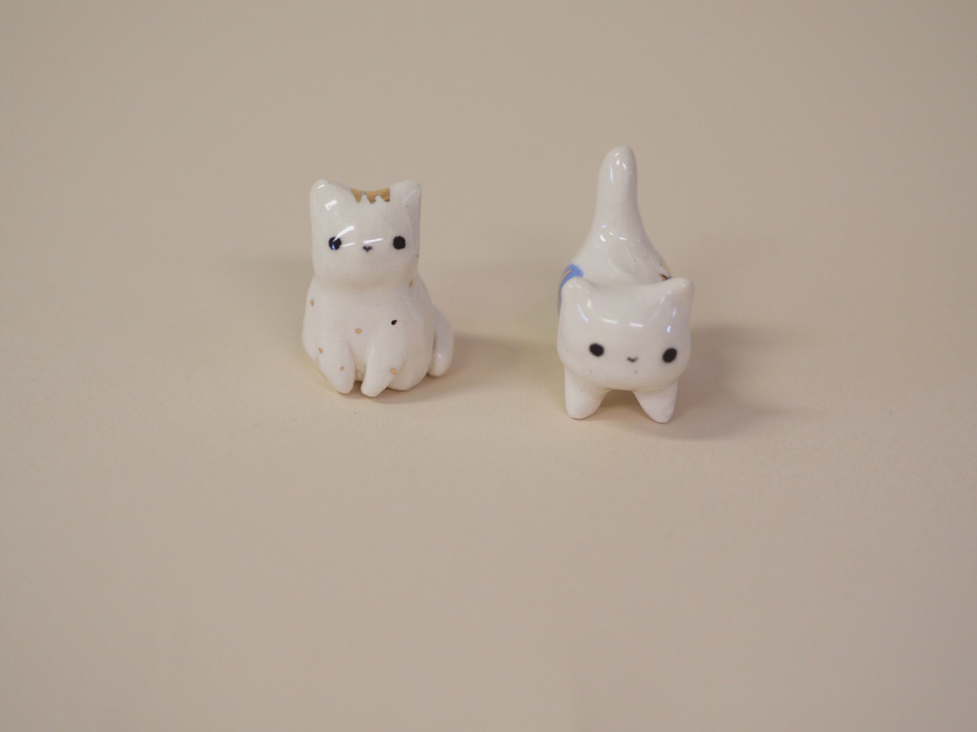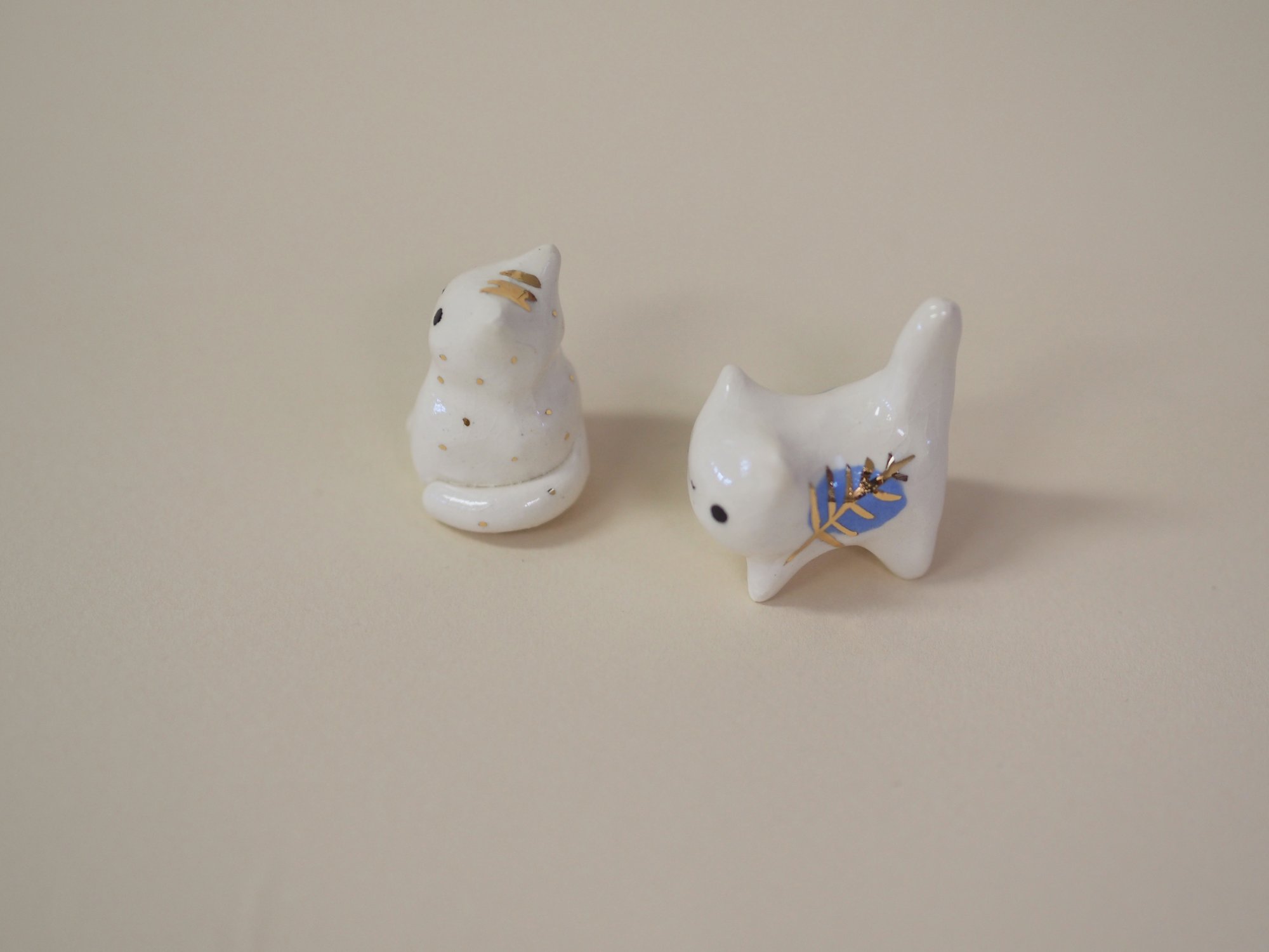 White porcelain kitties with gold luster details. Choose one below.