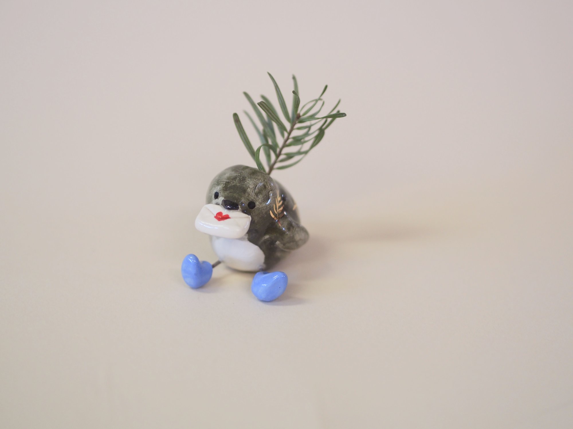 Sweet little bird in rainbows, with little holes on the back side for a tiny plant clipping.