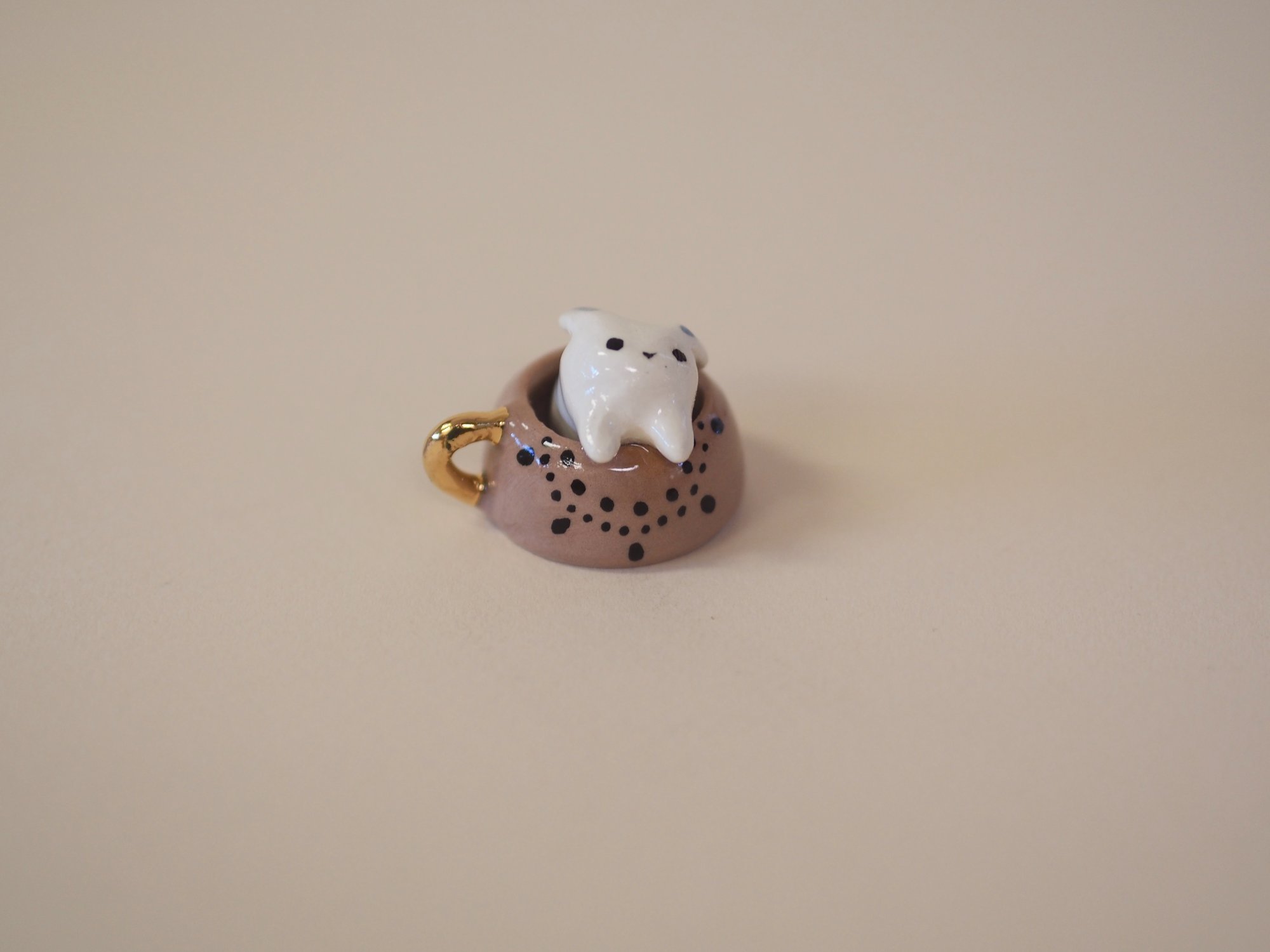 This bunny peeking out of a tiny mug has my heart, but it also has a small crack on the underside of the mug.