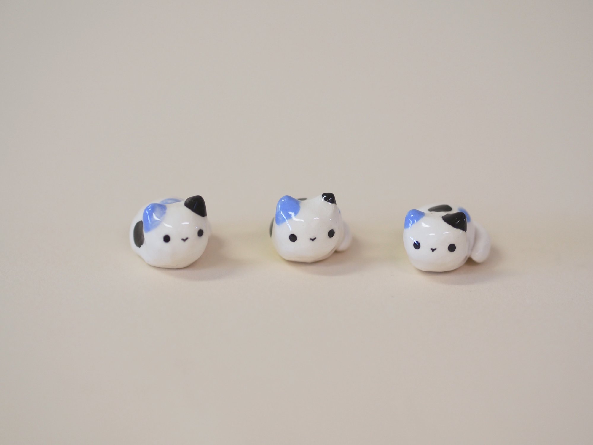 White porcelain kitties with black and blue underglaze. This listing is for one kitten chosen at random.