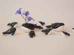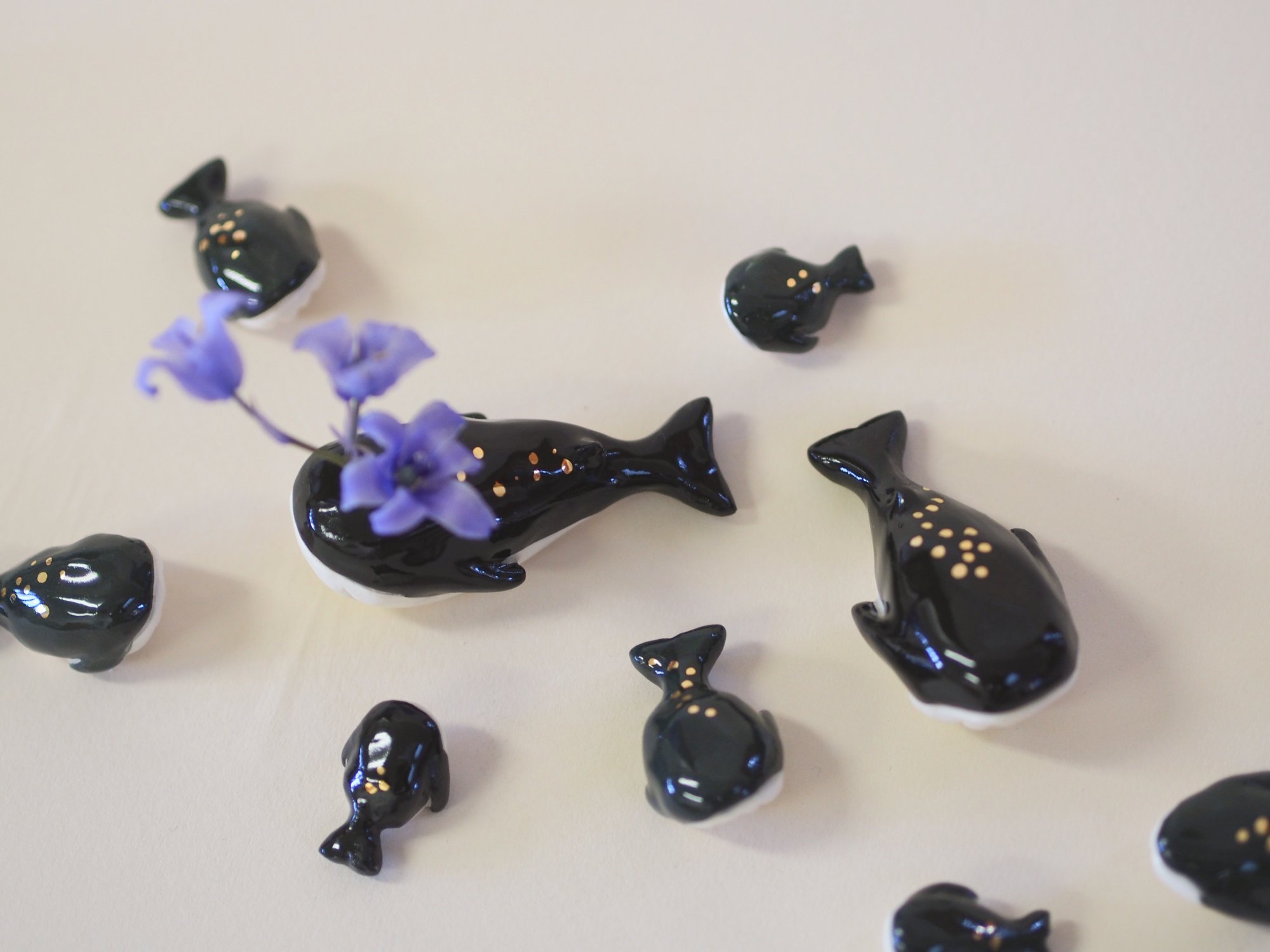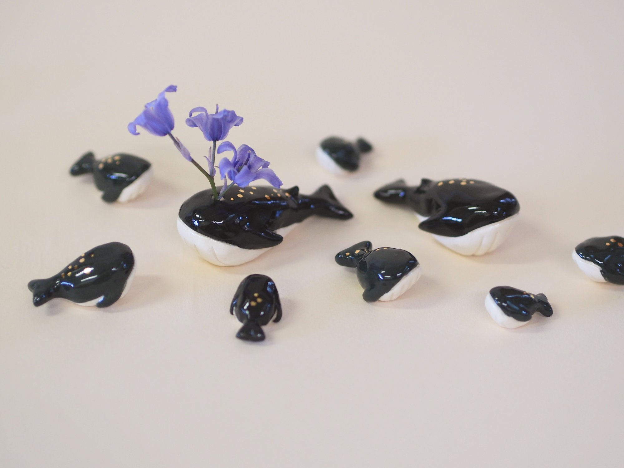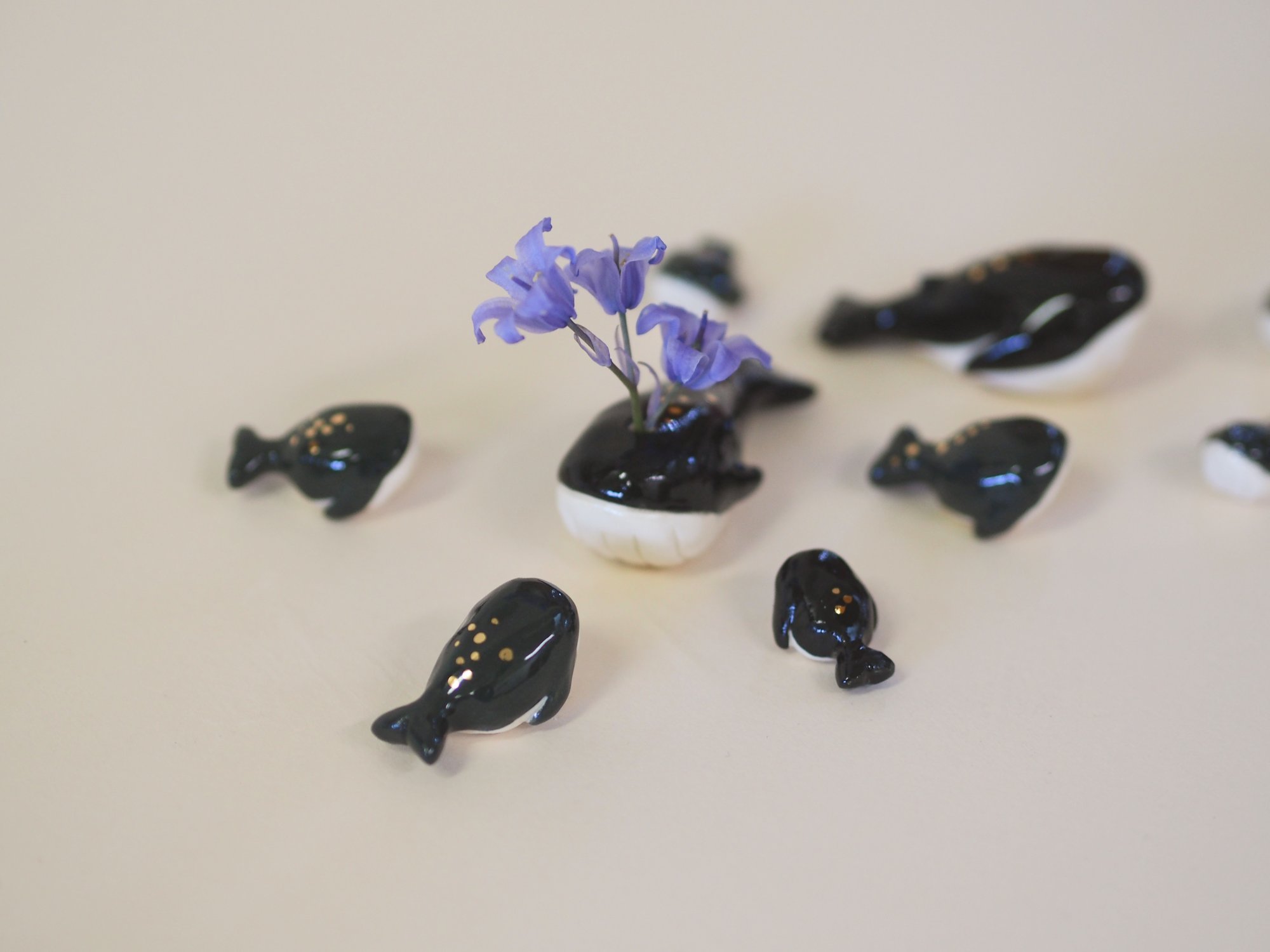 One whale has a hole for flowers, the others do not. Please choose one below.